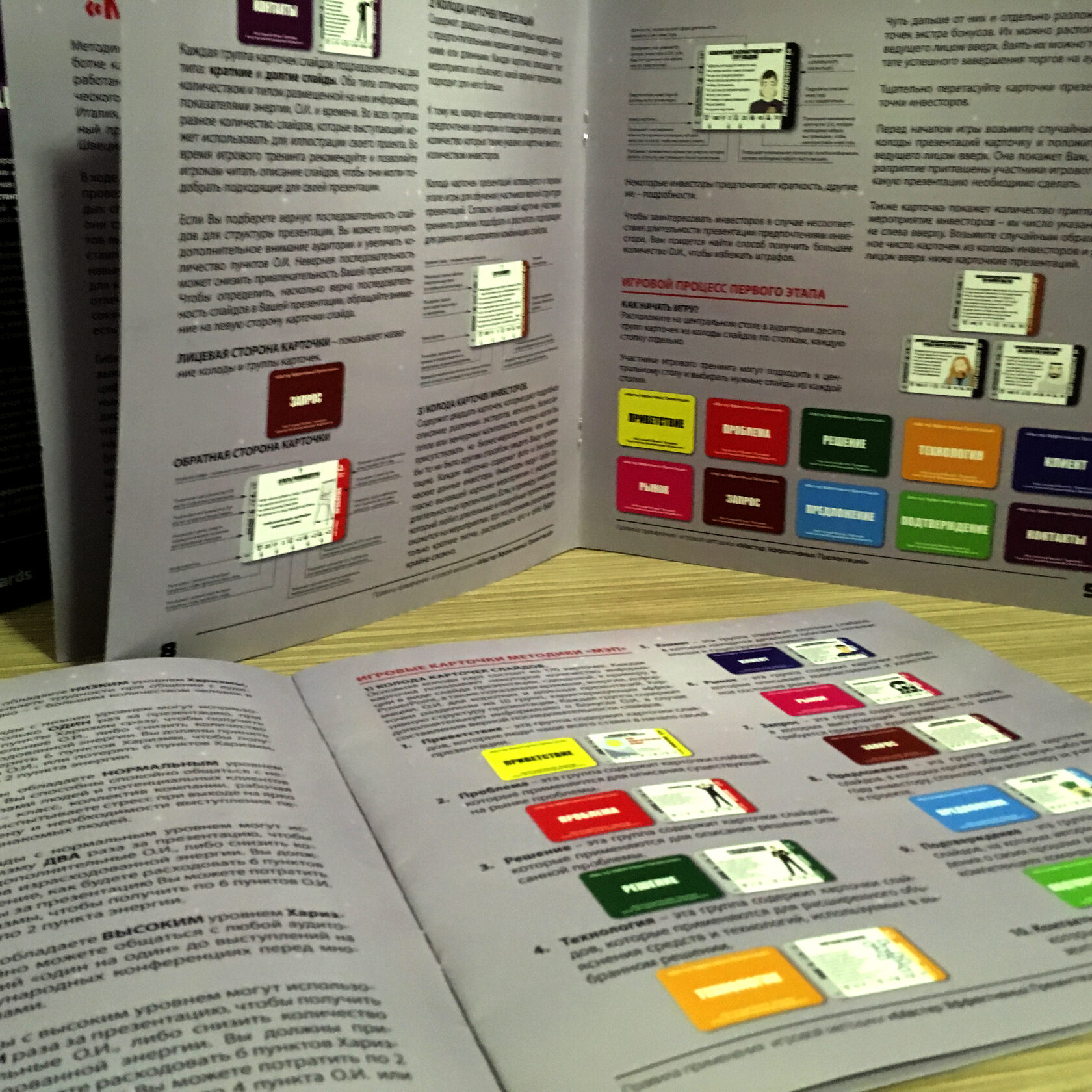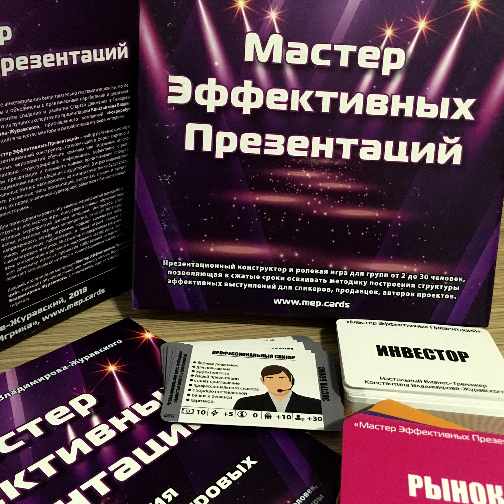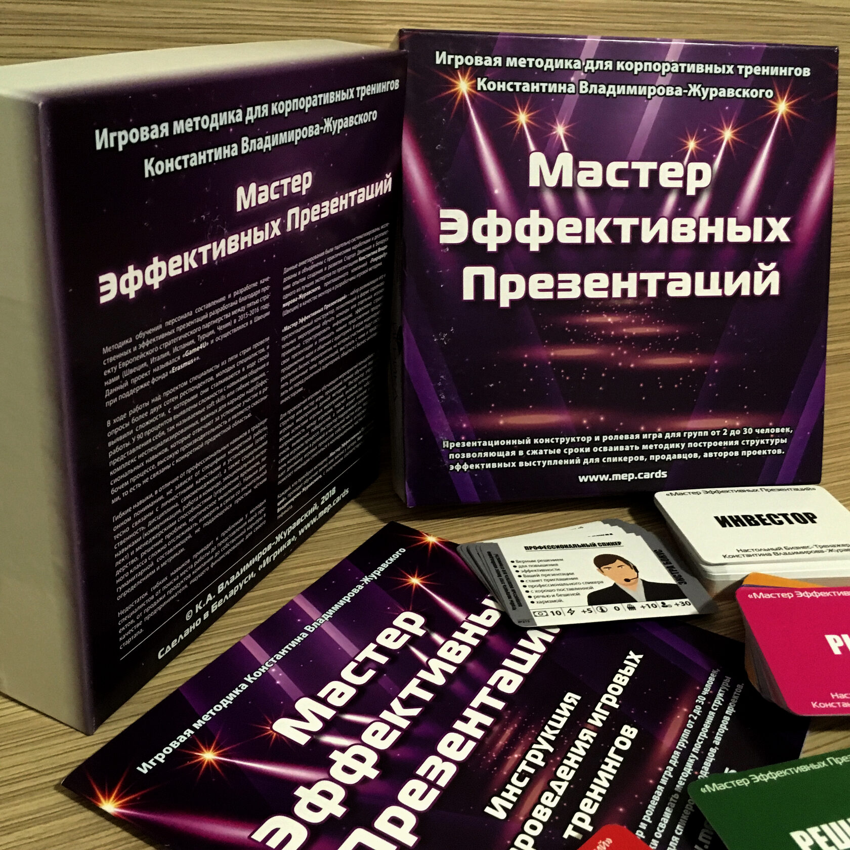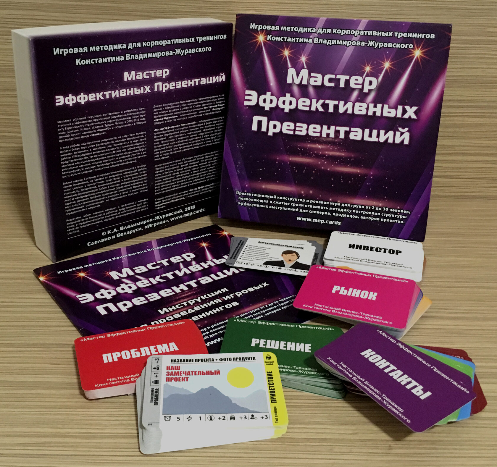 У камплекце: Зручная каробка для транспарціроўкі і захоўвання Картка Хуткага старту з Правіламі ўсяго на АДНУ старонку 15 Сітуацый па 3 ролі 30 картак Судзейства