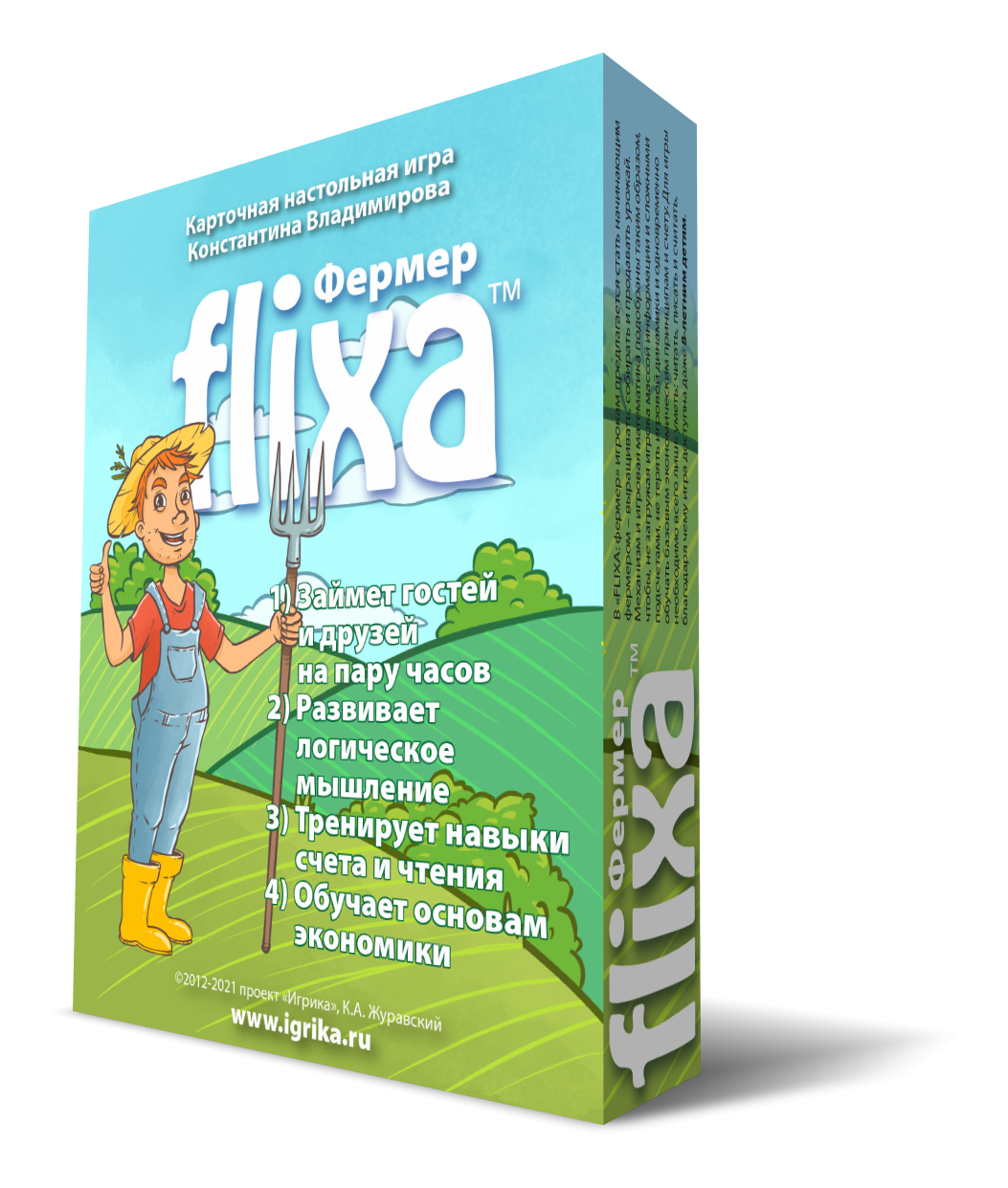 «FLIXA» is compact game and does not require the use of the playing field or chips. It can be played not only at home or in the office, but also in the open air, in transport while traveling, at the events, in a cafe. To play the game, each of the players only need to be able to read, write and count.