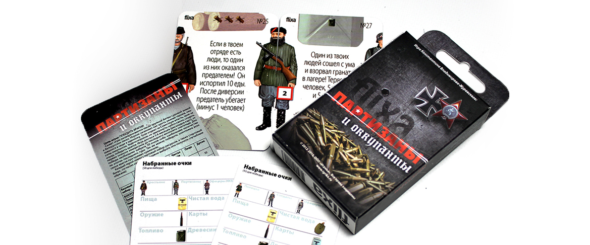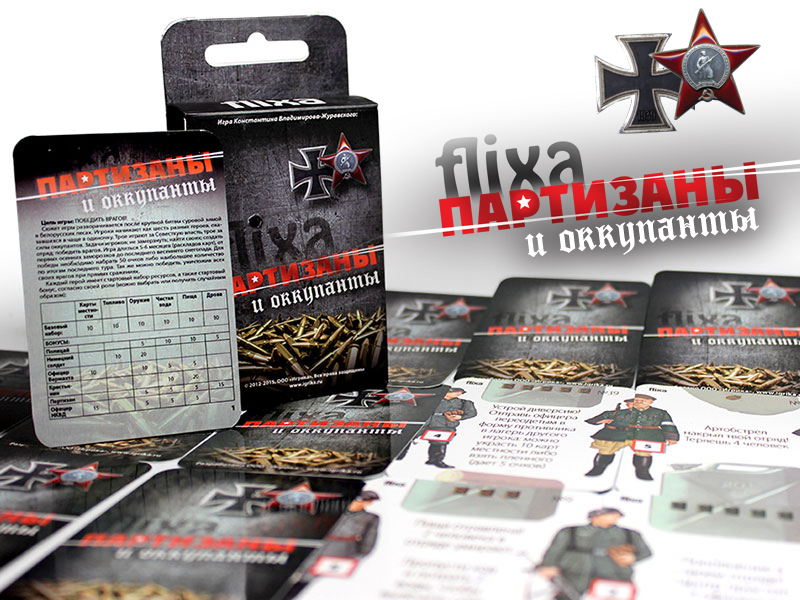 "Flixa: Партызаны і акупанты" - унікальная і простая гульня. Вы вывучыце правілы і зможаце гуляць ужо праз 15 хвілін. Стандартная партыя доўжыцца ад 30 хвілін да 2 гадзін і складаецца з 5-6 раздач карт - гульнявых месяцаў. Лічыцца, што за гэты час праходзіць 5-6 месяцаў з лістапада па красавік-травень у халоднай беларускай пушчы. У камплекце гульні 54 ігральныя карты і 6 картак атрадаў (з правіламі на абароце правіл). Працэс гульні вельмі просты: карткі з заданнямі, размяшчаюцца па пэўных правілах, фармуючы агульнае гульнявое поле, унікальнае пры кожнай новай раздачы.