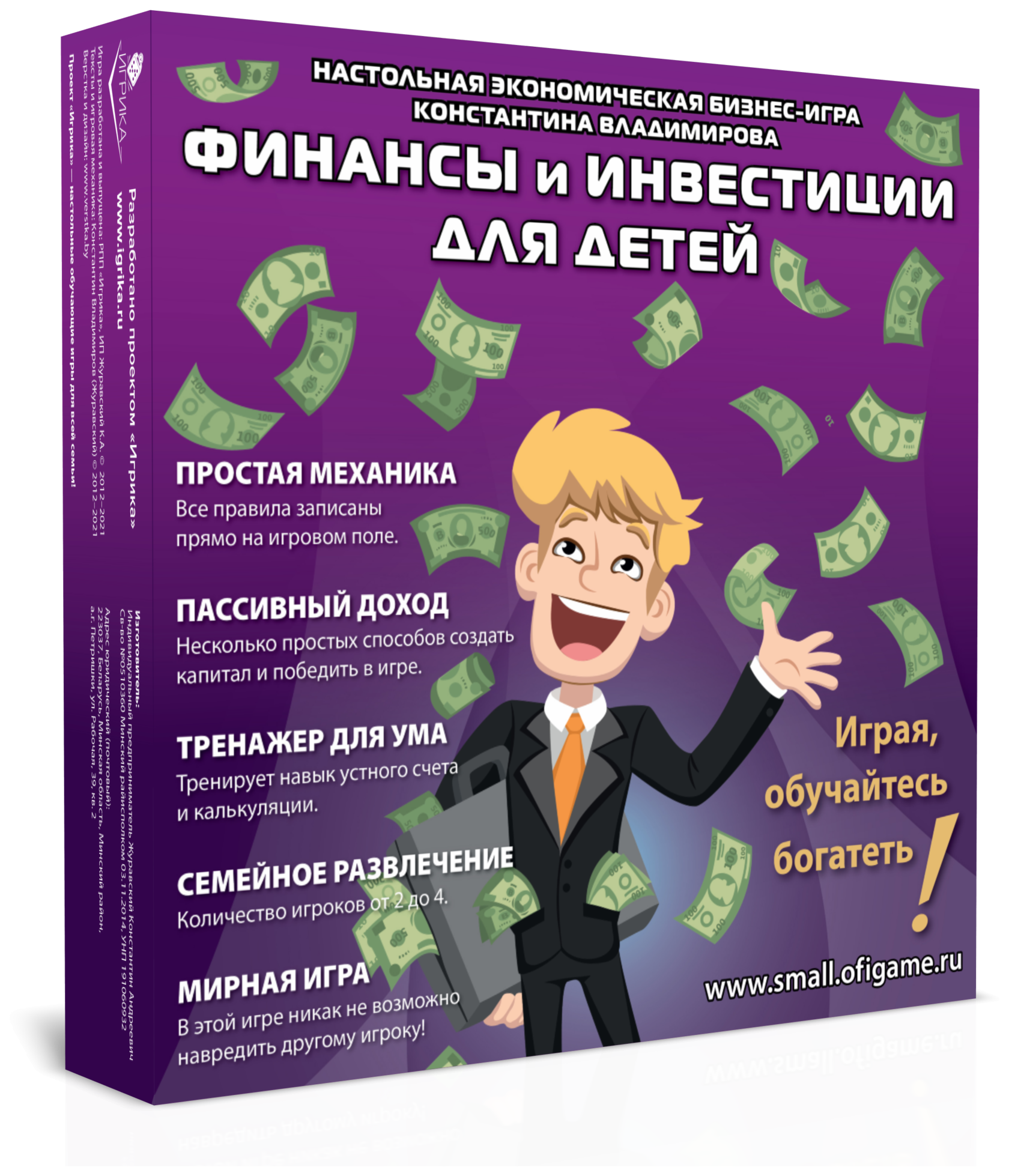 Гульня распрацавана для дзяцей тых, хто карыстаецца гульнявымі бізнес-трэнажорамі "Фінансы і Інвестыцыі", "Грашовы Паток Алігарха" і "Private Money Real Game". Цяпер Вы зможаце гуляць у фінансавыя трэнажоры ўсёй сям'ёй!